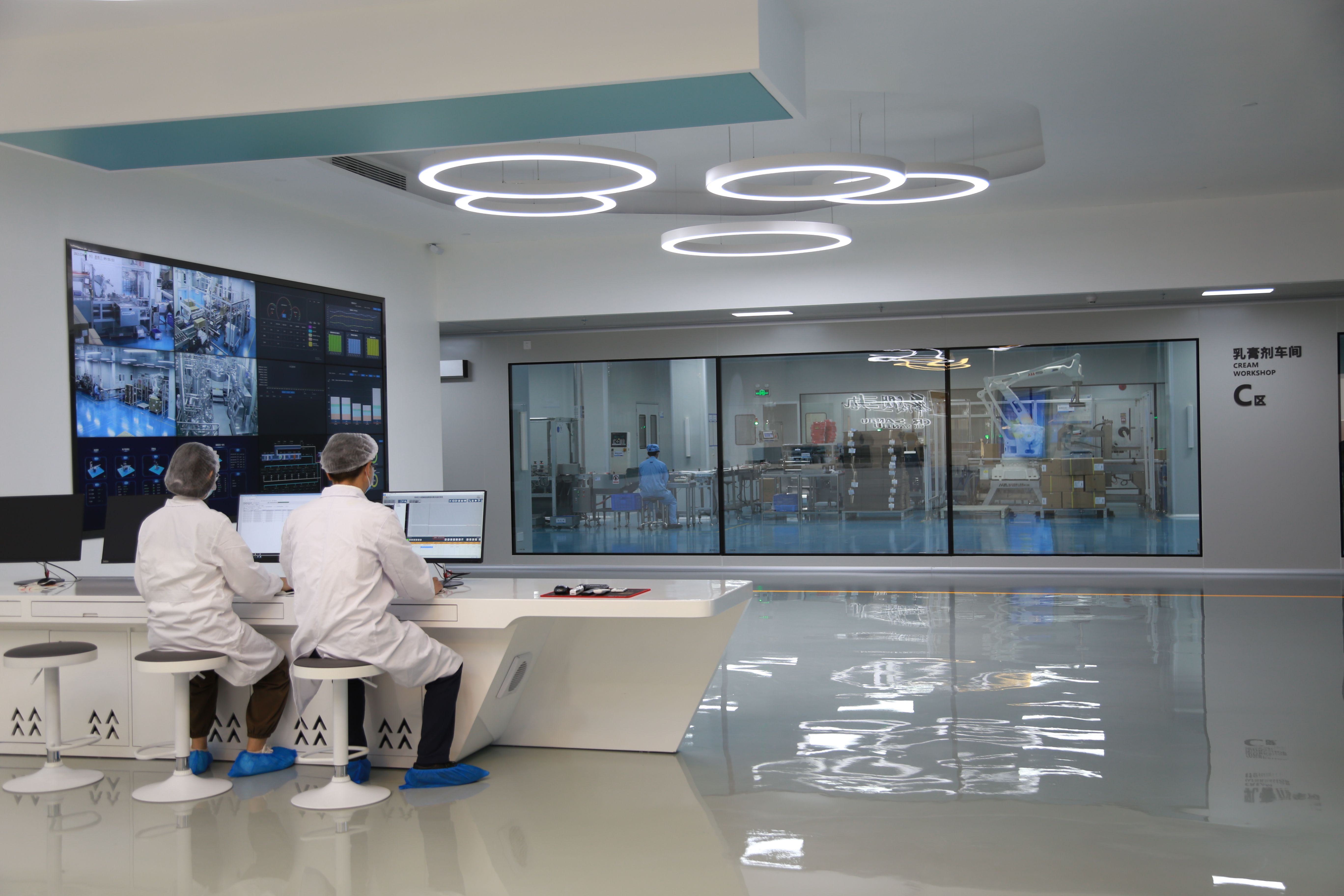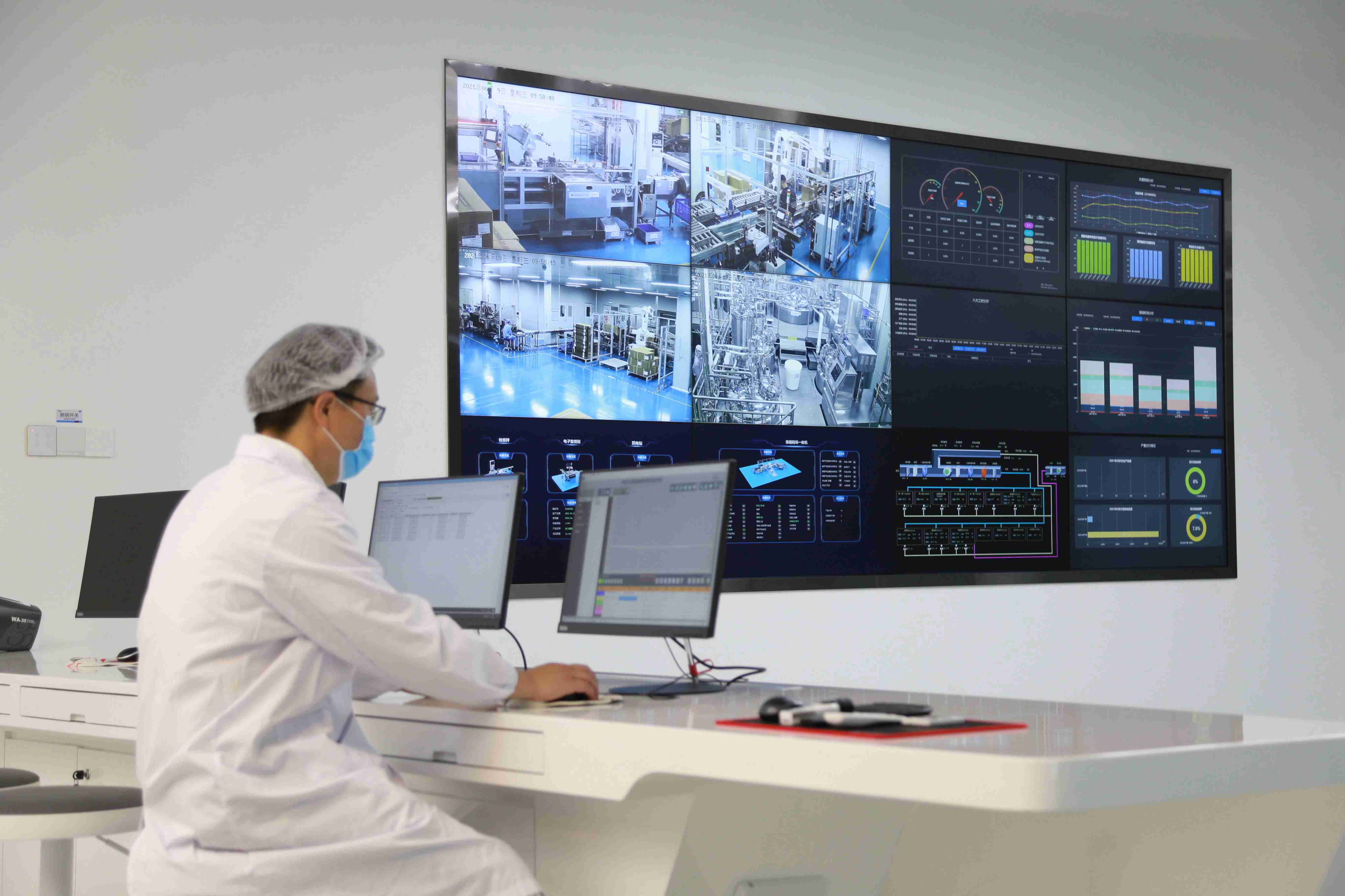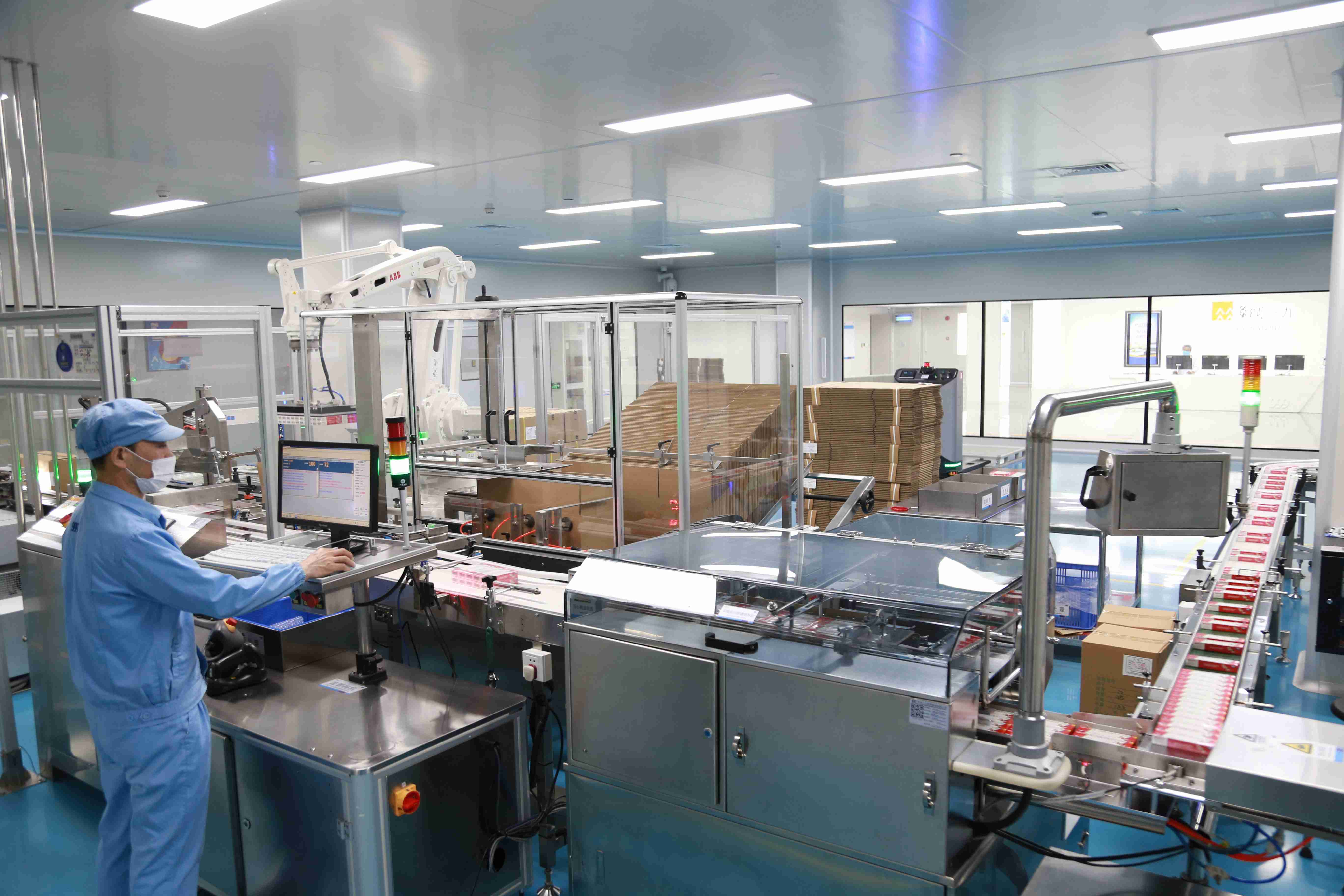 走进bevictor伟德观澜生产基地的智能制造中控中心,记者从监控大屏看到,自动化生产设备排列有序,高效运转;国内洁净区首条AGV运输线来回穿梭,各种原料源源不断被运回;偌大的制药车间,几乎看不到工人。