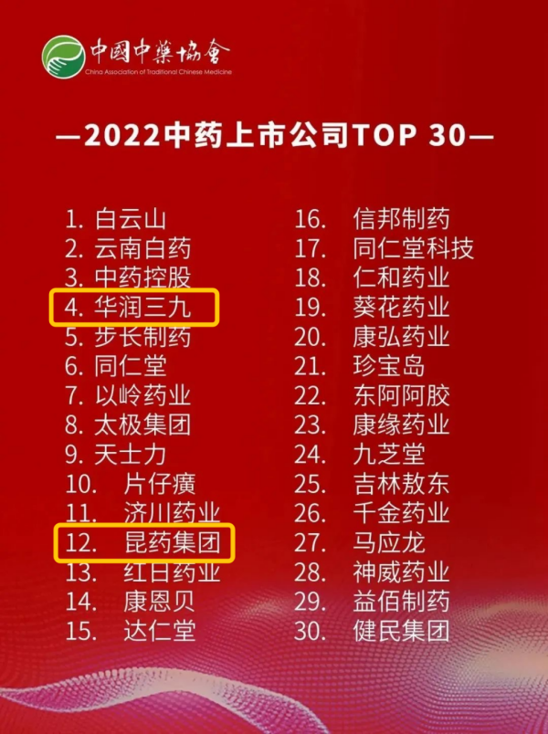 了解更多>>>bevictor伟德及旗下昆药集团入选“2022中药上市公司TOP30”榜单