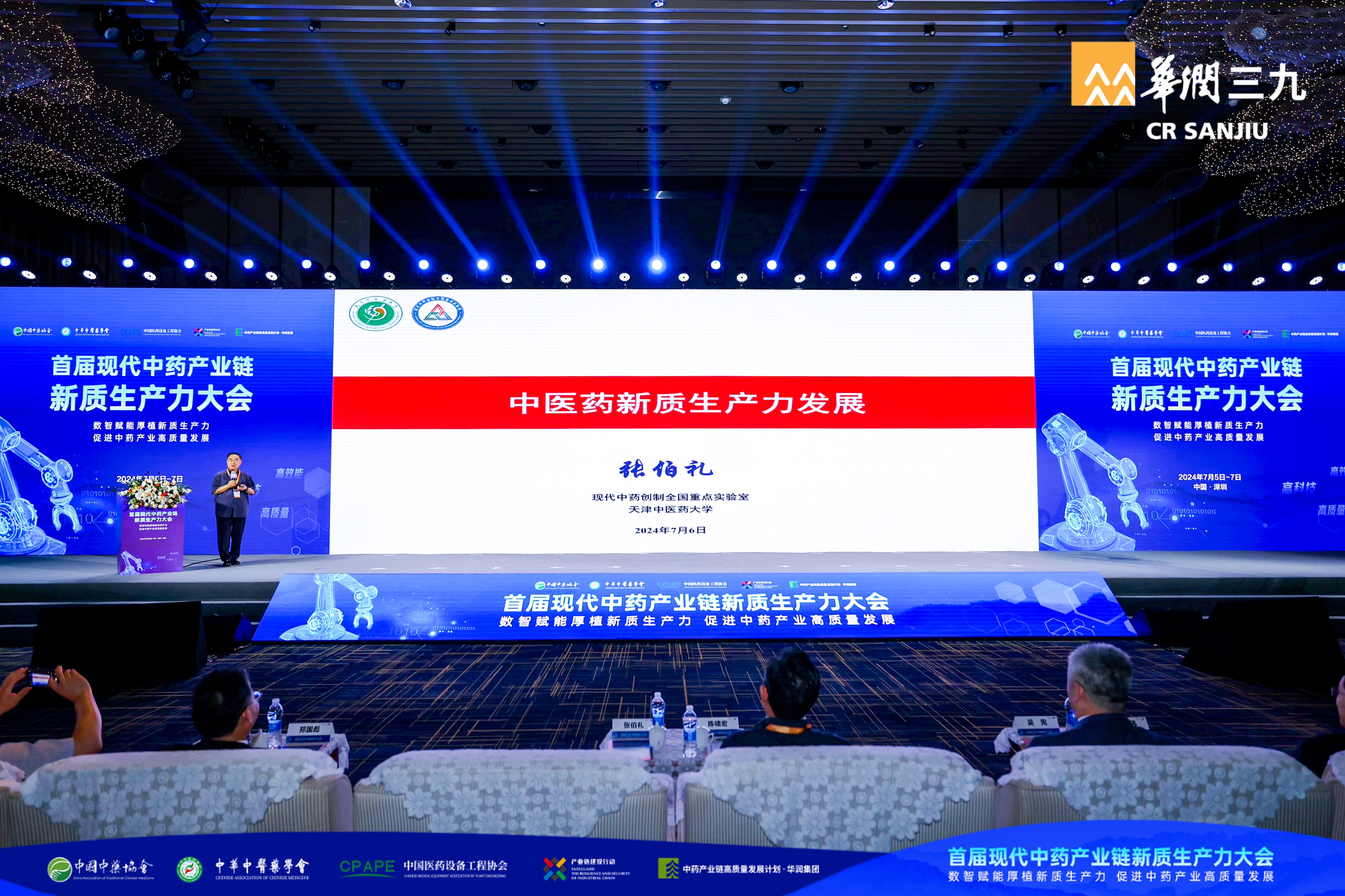 国家卫生和计划生育委员会原副主任陈啸宏,“人民英雄”国家荣誉称号获得者、中国工程院院士张伯礼,中国中药协会常务副会长吴宪,中共深圳市生物医药产业创新链委员会第一书记郑国彪,国家药典委员会副秘书长马双成,中国医药设备工程协会常务副会长顾维军,深圳市市场监督管理局党组成员、市食品药品安全总监王利峰,经典名方现代中药创制全国重点实验室主任杨明,南京医科大学副校长冯锋,天津中医药大学中药制药工程学院院长李正,深圳市龙华区工业和信息化局局长徐红丽,中国医药企业管理协会副会长王学恭,中国中药协会秘书长王桂华,深圳市药品检验研究院院长王冰等出席会议。主管部门、协会学会、科研院所、中药产业链上下游企业代表近500人参会。