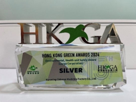 昆中药荣获2024年香港绿色企业大奖—“超卓环保安全健康奖”银奖
