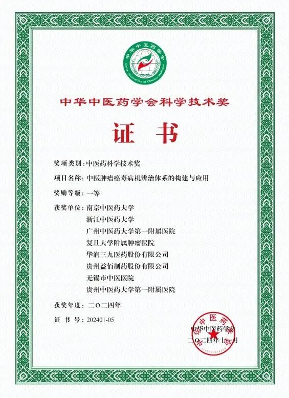 bevictor伟德荣获两项中华中医药学会科学技术奖一等奖