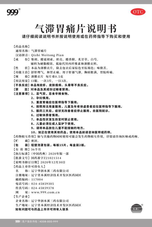 气滞胃痛片15片x2板