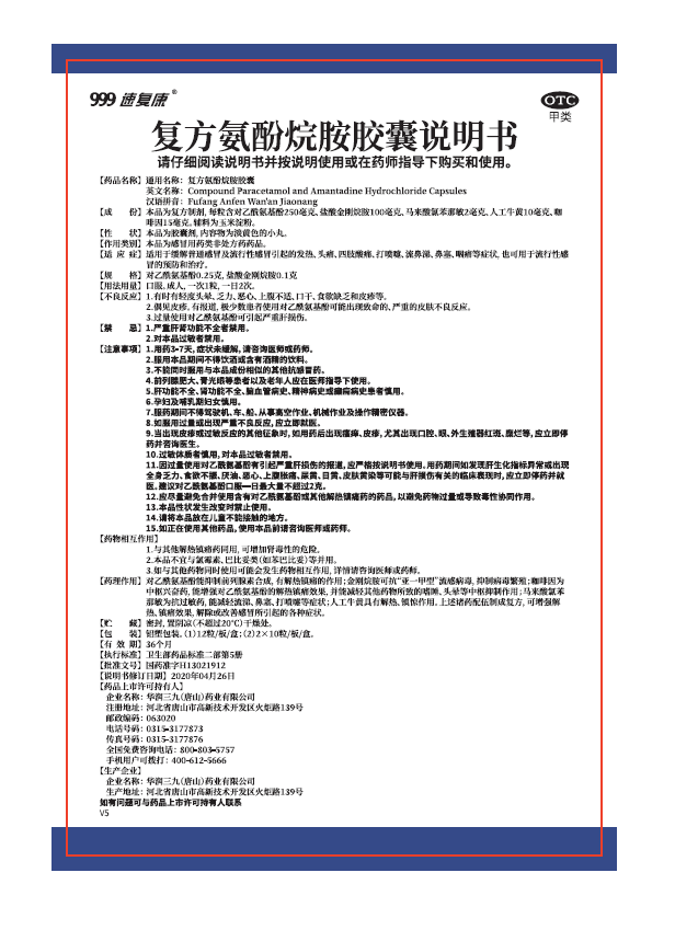 复方氨酚烷胺胶囊12粒、20粒说明书v5