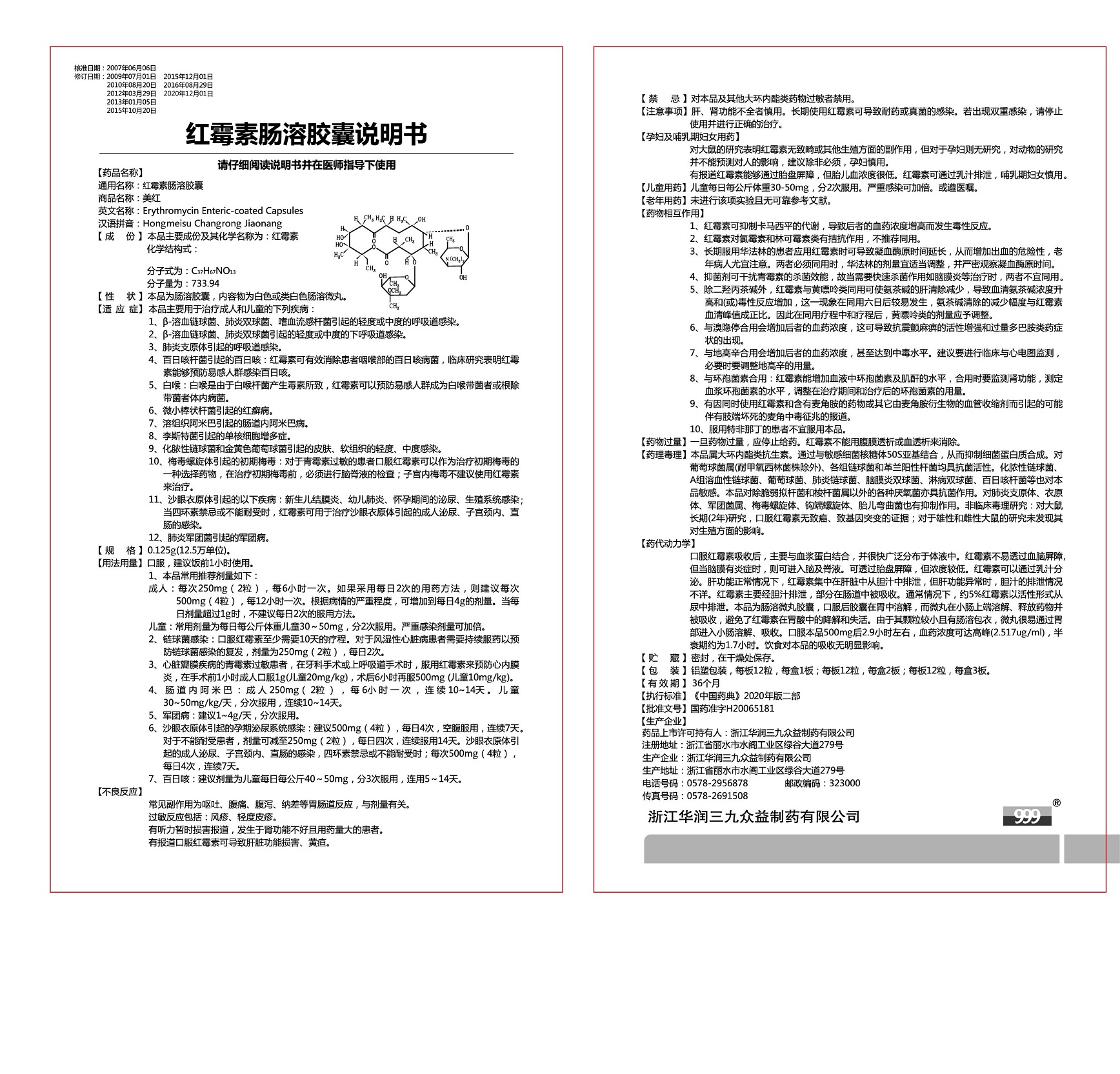 美红--红霉素肠溶胶囊