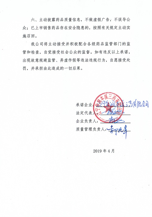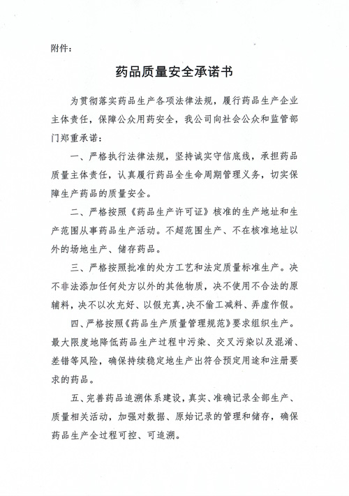 药品质量安全承诺书