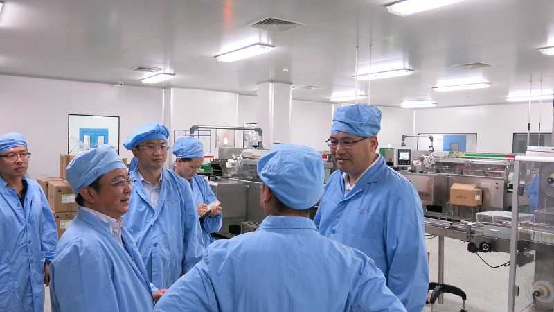 马旭明书记现场参观了bevictor伟德(黄石)新建的小儿颗粒剂双分袋生产线,周奇总经理详细介绍了新生产线的建设,GMP认证以及投产后的生产情况,同时简要介绍了公司“十三五”发展规划以及近两年的企业运营状况。