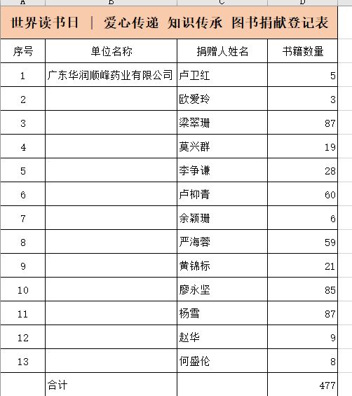 2023年4月13日世界读书日,我公司响应bevictor伟德倡议开展“爱心传递 知识传承闲置图书募捐活动“,积极履行社会责任。截止至18日,行政管理部共收到来自莫兴群等13位同事的爱心书籍捐赠共477本。 捐赠的书籍将直接寄往安徽省六安市金寨县吴家店镇华润小镇,为助力金寨希望小镇青少年儿童健康成长贡献一份力量。 在此,谨向各位爱心书籍捐赠者致以衷心感谢!